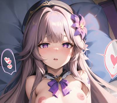 崩壊スターレイルのヘルタ(Honkai Star Rail Herta)が淫紋を刻まれて発情し、ベッドの上でオマンコを弄り、手マンオナニーで気持ち良くなっているAIエロイラストです。